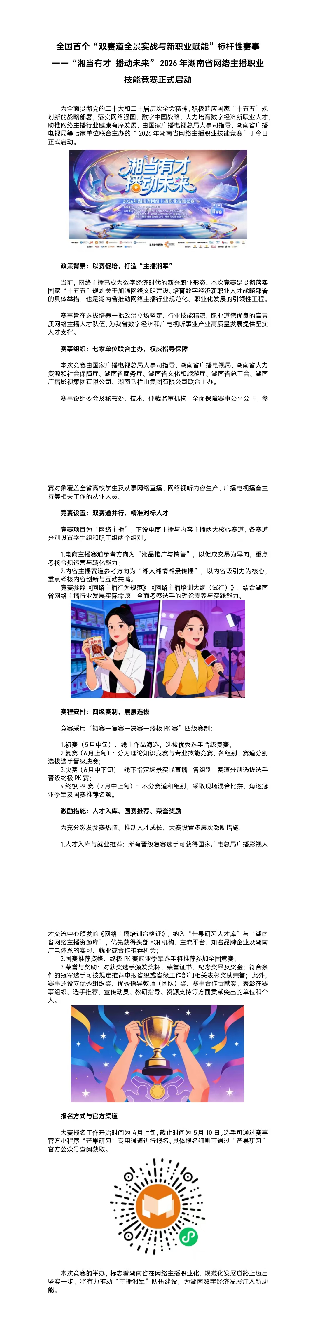 全国首个“双赛道全景实战与新职业赋能”标杆性赛事— —“湘当有才 播动未来”2026年湖南省网络主播职业技能竞赛正式启动